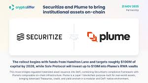 In a landmark development for real-world asset (RWA) finance, Securitize — one of the most established tokenization platforms — has teamed up with Plume Network, a Layer‑2 blockchain purpose-built for RWA finance, to bring major institutional assets onchain. Notably, this includes funds associated with Apollo, Hamilton Lane, VanEck, and BlackRock. At the same time, Solv Protocol is backing the effort by injecting $10 million into Plume’s RWA vaults, strengthening the bridge between Bitcoin finance and regulated DeFi.